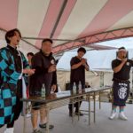 青年部ブースでは、やきとり、焼きそばなどを販売しました。また、イベントでは、福岡町獅子舞競演会が開催され多くの青年部員が参加しました。